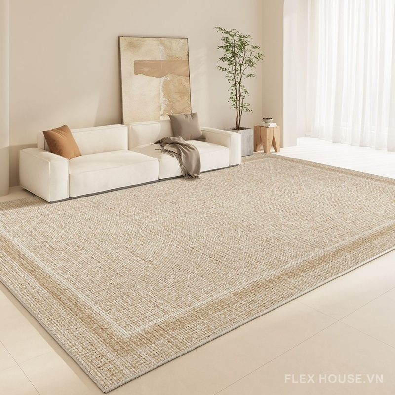 Gam màu be sáng tự nhiên kết hợp bề mặt sợi đan tinh xảo giúp căn phòng trở nên ấm áp, rộng thoáng và sang trọng một cách nhẹ nhàng. Thảm polyester XF0439 phù hợp cho mọi không gian: phòng khách, phòng ngủ, homestay, studio decor hoặc các căn hộ yêu phong cách tinh giản Nhật.