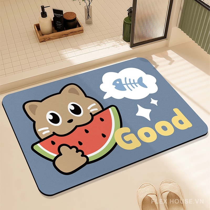 Mô tả Thảm trang trí nhà tắm hình mèo ăn dưa hấu XF1649