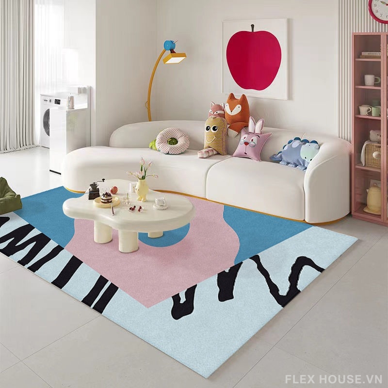 Điểm đặc biệt của thảm trải sàn JX7009 nằm ở khả năng “đánh thức không gian”: chỉ cần đặt thảm, căn phòng lập tức trở nên trẻ trung, sáng tạo và có cá tính rõ rệt. Rất phù hợp với phòng khách gia đình trẻ, phòng trẻ em, studio, homestay hoặc những không gian yêu thích vibe nghệ thuật – vui nhộn – khác biệt.