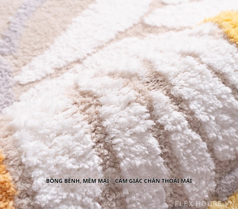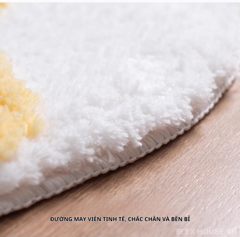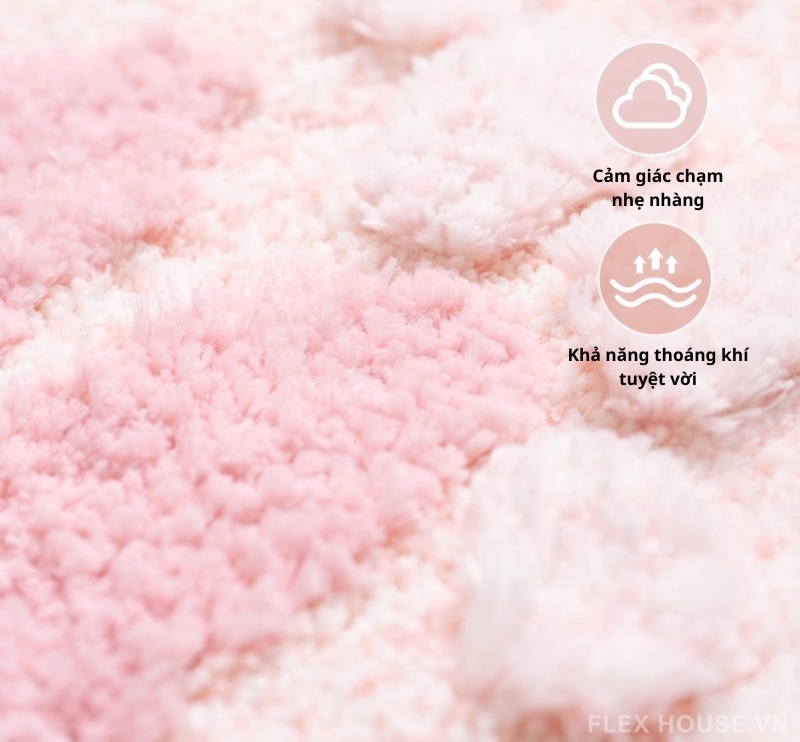 - Mặt thảm là sợi dệt máy. Trong quá trình sử dụng nếu có lông nổi có thể hút bụi để xử lý, hiện tượng này sẽ không lan rộng.