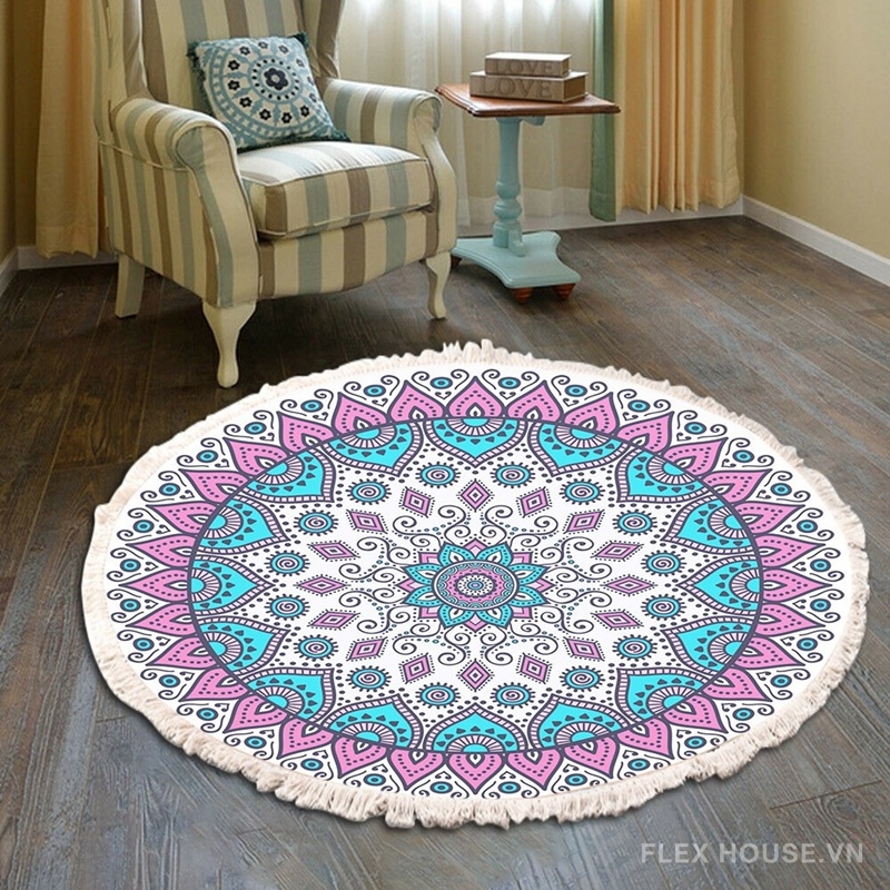- Kiểu dáng: Thảm tròn, viền tua rua mềm mại