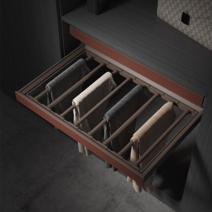 Phụ kiện tủ quần áo: Taura cung cấp đầy đủ và toàn vẹn các phụ kiện như giá đựng đồ gấp, đồ treo, suốt treo quần áo; giá treo quần âu, giá để đồ giặt đến gương soi âm tủ; giá đựng đồ trang sức, giá treo thắt lưng, cavat…Bên cạnh đó, các giải pháp chứa đựng lớn mà gọn gàng như phụ kiện góc tủ áo; giá để giày xoay 360 độ mang đến tính năng vượt trội. Các giải pháp về an toàn và riêng tư tài sản với hộp an toàn ngăn kéo tủ sẽ giúp bảo quản tốt hơn các đồ vật quý giá và riêng tư gia đình.