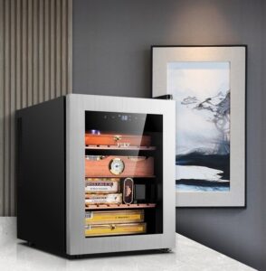 Tủ điện giữ ẩm cigar mini 33 lít FK90C được thiết kế có thể chứa được từ 200-300 điếu, với chức năng gần như một chiếc tủ lạnh di động có đầy đủ những công năng hiện đại nhất mà không phải hãng tủ đựng bảo quản xì gà khác cũng có được. Kiểu dáng tủ được thiết kế rất sang trọng và có thể làm vật trang trí tại phòng làm việc cũng như phòng khách của gia đình bạn. Ngoài ra, nhờ có công năng đặc biệt, chiếc tủ cao cấp này bạn cũng có thể sử dụng để bảo quản rượu vang.