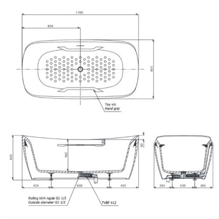 Bồn tắm đặt sàn nổi bật với thiết kế độc lập, kiểu dáng tinh tế và chất liệu cao cấp giúp giữ nhiệt tốt, bền bỉ theo thời gian. Sản phẩm mang đến cảm giác thư giãn sâu và góp phần nâng cao giá trị thẩm mỹ cho toàn bộ không gian phòng tắm.