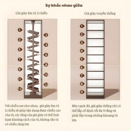 Giá để giày 2 chiều âm tủ 12 tầng tiết kiệm không gian YHF2507