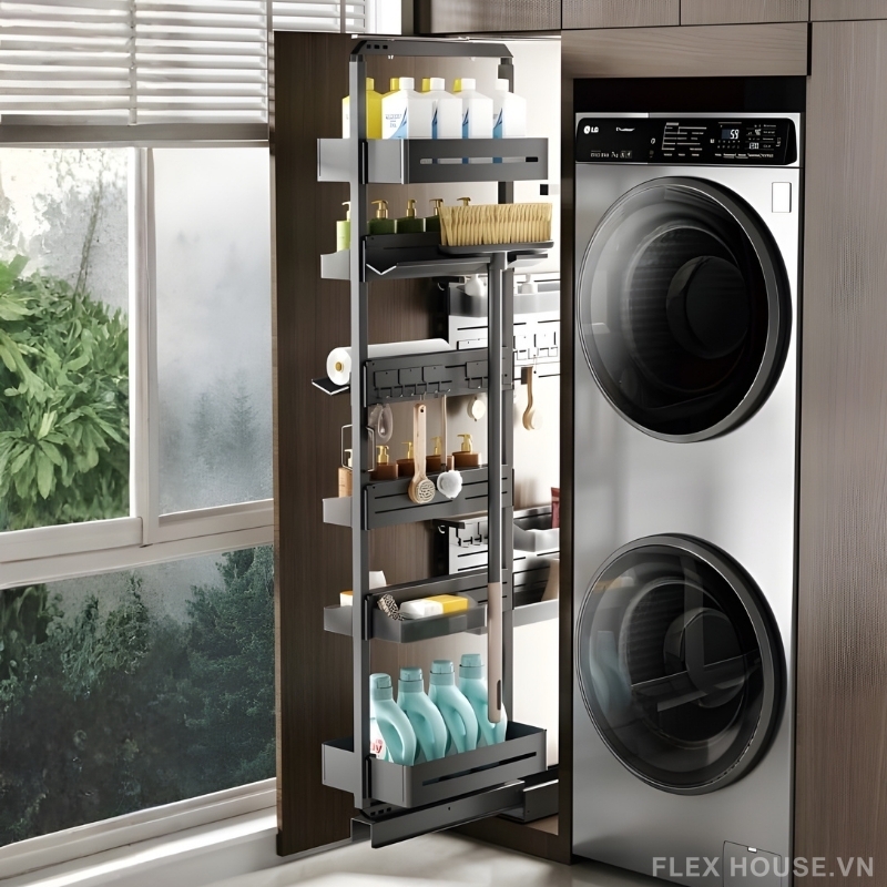 - Phân tầng đa cấp khoa học: Cấu trúc nhiều tầng giúp phân loại riêng biệt đồ vệ sinh, chai lọ, thực phẩm khô hoặc dụng cụ gia đình, tạo nên một “kho mini” gọn gàng trong tủ