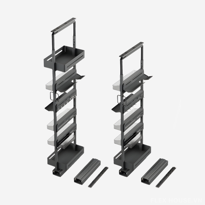 Tủ lưu trữ dụng cụ vệ sinh chai lọ đồ khô Taura 81645 là giải pháp chuyên biệt cho các khoang tủ cao, giúp sắp xếp gọn gàng từ hóa chất tẩy rửa, chai lọ vệ sinh đến thực phẩm khô và vật dụng gia đình. Thiết kế dạng cánh rút thông minh cho phép toàn bộ hệ khay di chuyển ra ngoài, giúp bạn dễ dàng quan sát và lấy đồ mà không cần cúi sâu hay với tay vào góc khuất.