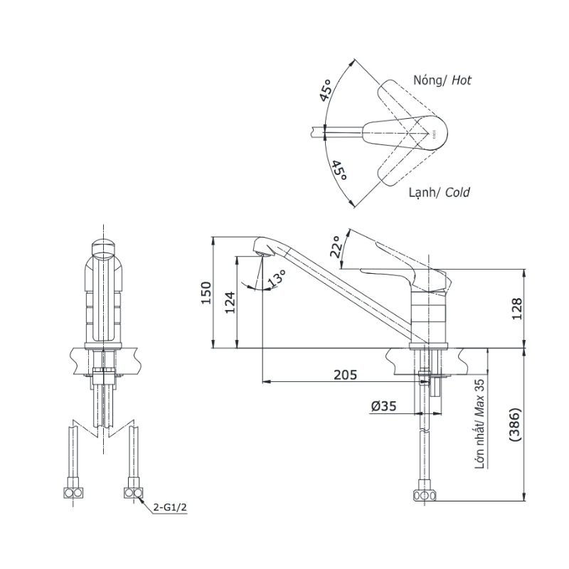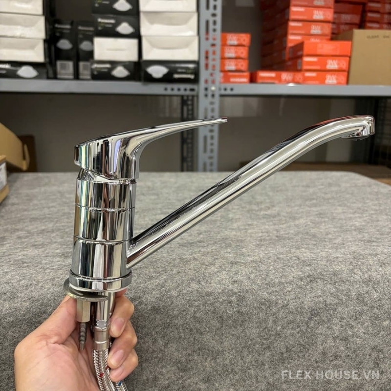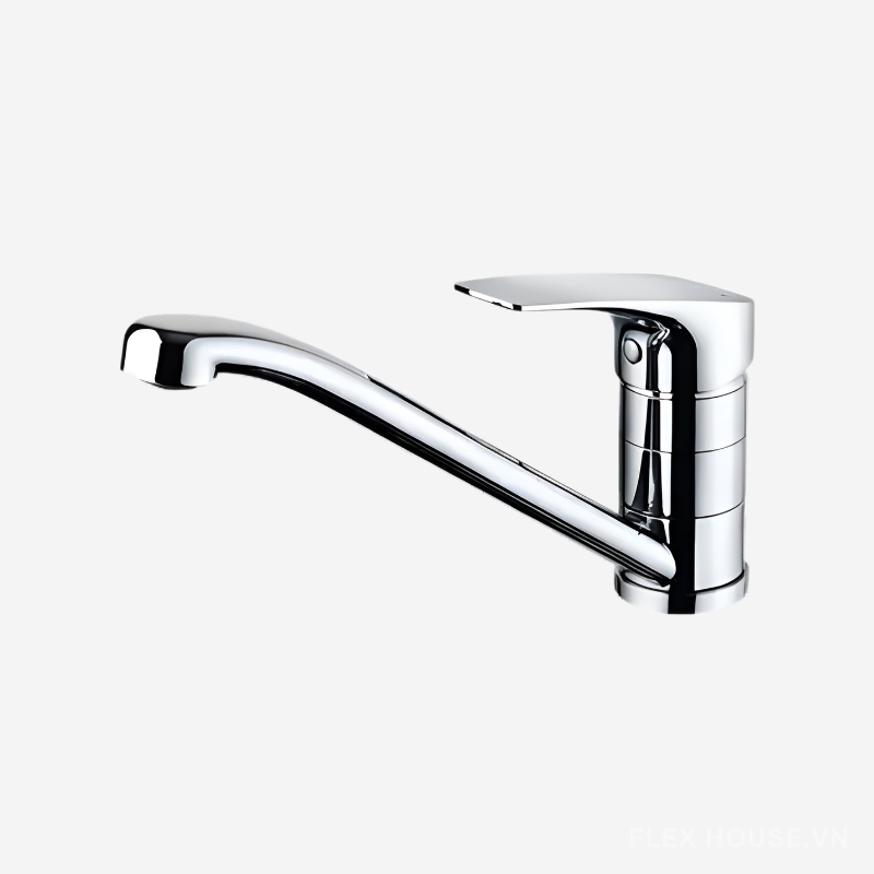 Vòi hỗ trợ nóng – lạnh tiện lợi, tay gạt đơn dễ thao tác, đầu vòi tích hợp lưới lọc chống văng nước giúp dòng chảy êm ái và tiết kiệm nước hiệu quả. Vòi có khả năng xoay 180° linh hoạt, phù hợp lắp đặt trên chậu hoặc mặt bàn bếp, đáp ứng tốt nhu cầu sử dụng hằng ngày trong gia đình, căn hộ và nhà phố hiện đại.