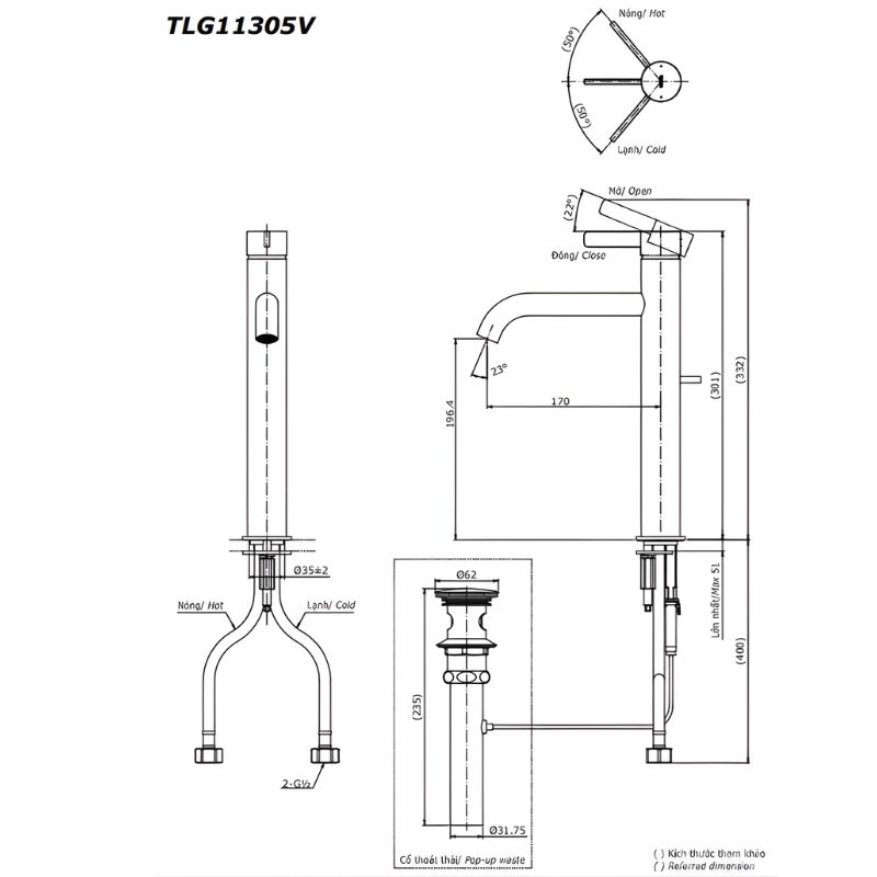 - Áp lực nước: 0.05 ~ 1.0 MPa