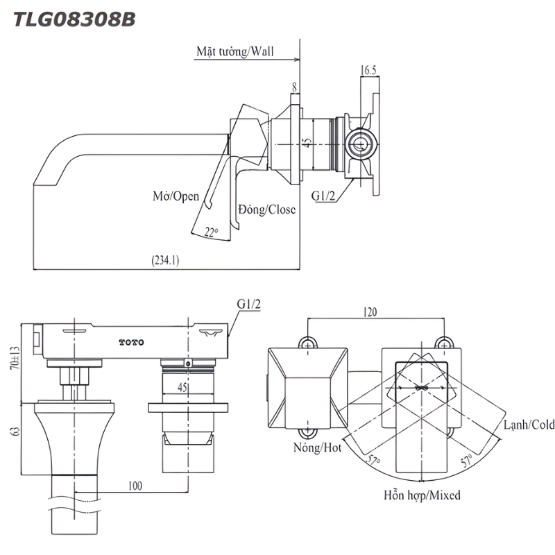 Giới thiệu Vòi chậu gật gù gắn tường nóng lạnh TOTO TLG08308BA