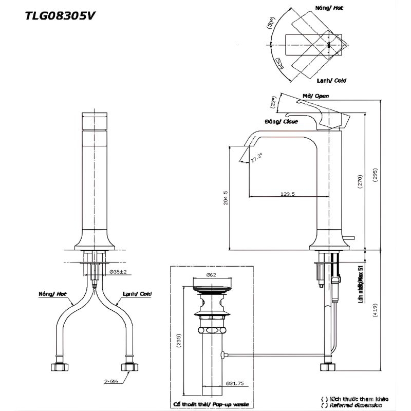 - 2 tay gạt nóng/lạnh riêng biệt, vận hành linh hoạt