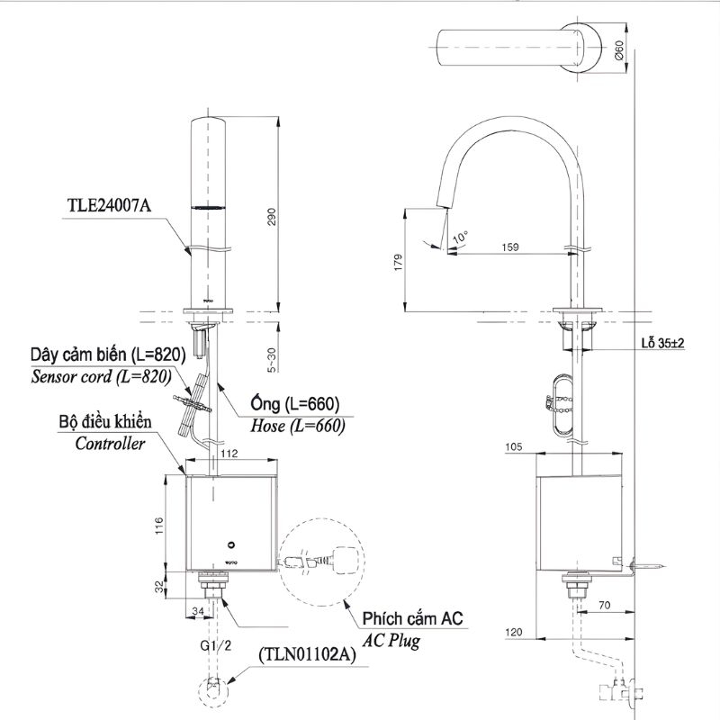 Giới thiệu Vòi chậu lavabo cảm ứng cổ cao TOTO TLE24007V