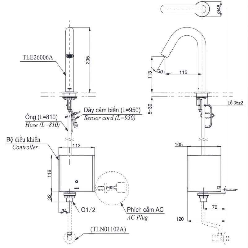 Chiếc vòi cảm ứng TLE26007V được thiết kế dáng cổ cao cho trải nghiệm rửa tay hoàn toàn không chạm, giúp đảm bảo vệ sinh tối đa. Cảm biến được đặt ngay dưới đầu vòi để nhận diện tay chính xác và nhanh hơn. Sản phẩm sử dụng công nghệ SELF POWER tự tạo năng lượng khi nước chảy, không cần thay pin; kết hợp ECO CAP tạo bọt khí giúp dòng nước mạnh nhưng vẫn tiết kiệm. Bộ vòi được chế tác từ đồng mạ crom, lắp 1 lỗ, dùng nước lạnh, đầu vòi dài 168 mm, phù hợp lắp trên chậu/bàn với kiểu dáng cổ cao thanh lịch.