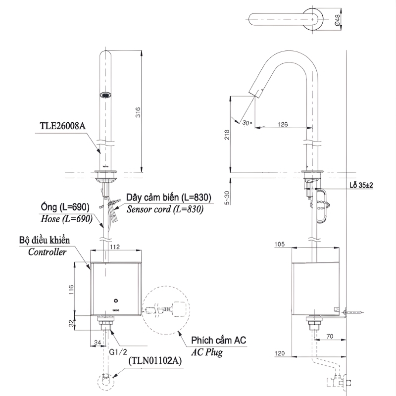 Vòi cảm ứng cổ cao TLE26008V mang thiết kế sang trọng dành cho lắp đặt trên mặt chậu, vận hành hoàn toàn không chạm giúp giữ khu vực rửa tay luôn sạch khuẩn. Cảm biến cao cấp được đặt ngay dưới đầu vòi, nhận diện tay chính xác gần như không có độ trễ. Sản phẩm sử dụng công nghệ SELF POWER – tự tạo điện trong quá trình sử dụng, kết hợp ECO CAP giúp dòng nước mạnh mẽ nhưng tiết kiệm đáng kể lượng nước tiêu thụ.