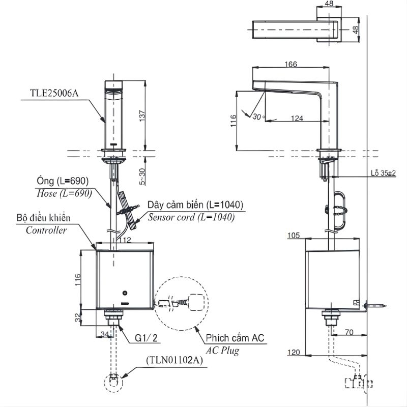 Giới thiệu Vòi chậu lavabo góc vuông cảm ứng TOTO TLE25006V