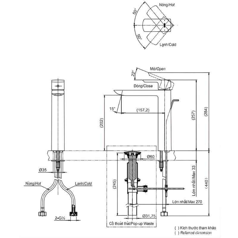 - Áp lực nước: 0.05 – 1.0 MPa