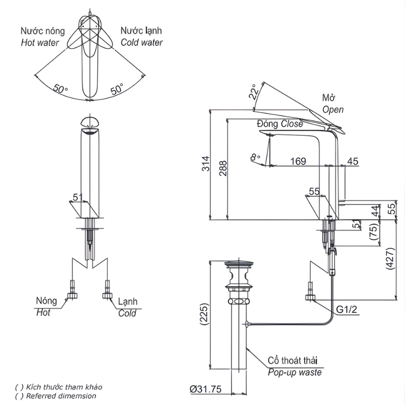 - Bao gồm bộ xả và chưa bao gồm ống thải