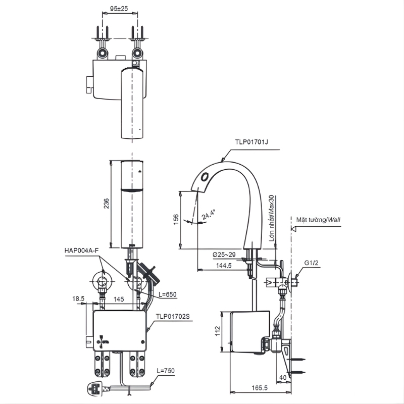 Lưu ý: Vòi chưa đi kèm bộ điều khiển