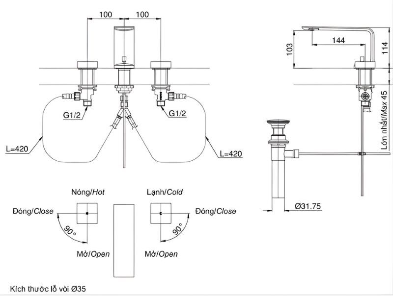 - Loại: Hai tay vặn, ba lỗ