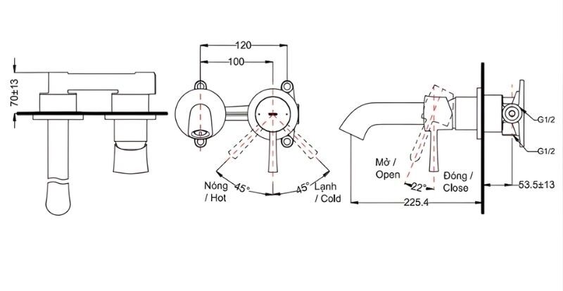 - Áp lực nước: 0.05–1.0 MPa