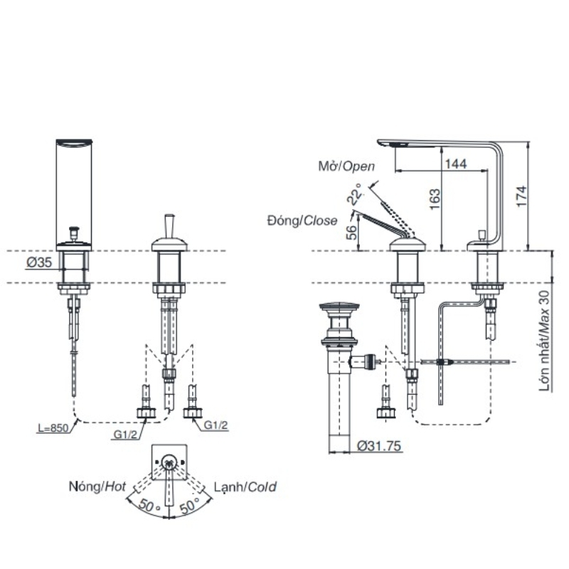 - Bao gồm bộ xả và chưa bao gồm ống thải