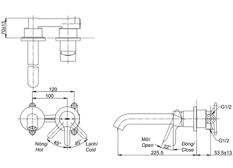 - Loại: Hai tay vặn, ba lỗ