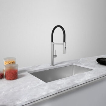 – Thân vòi Silicone linh động có thể kéo dài lên đến 50cm, di chuyển đến mọi góc của chậu rửa