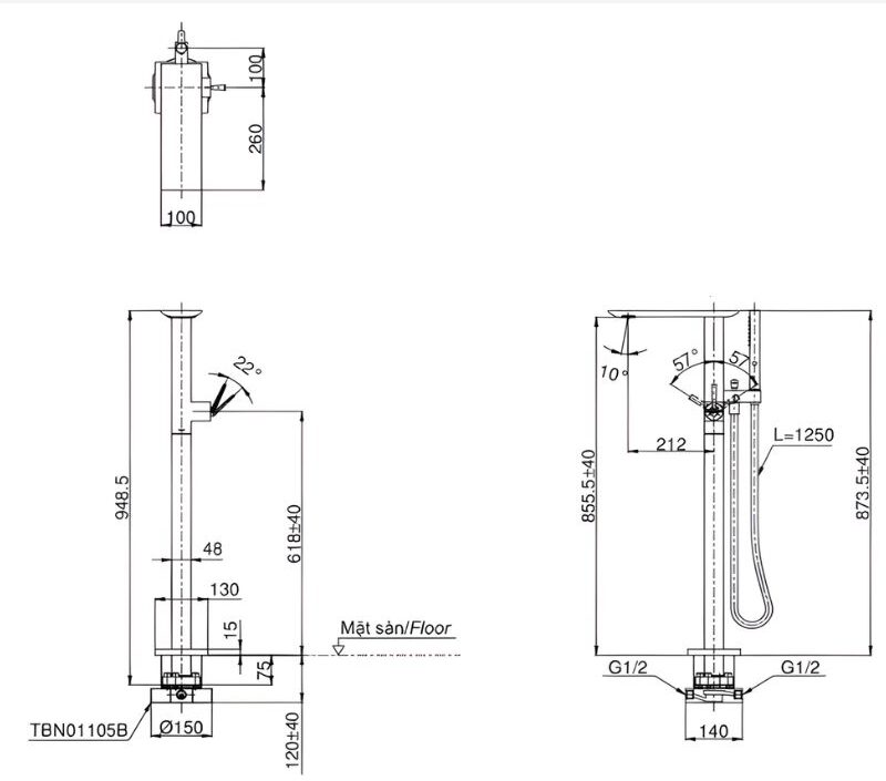 - Loại đặt sàn kèm sen tắm