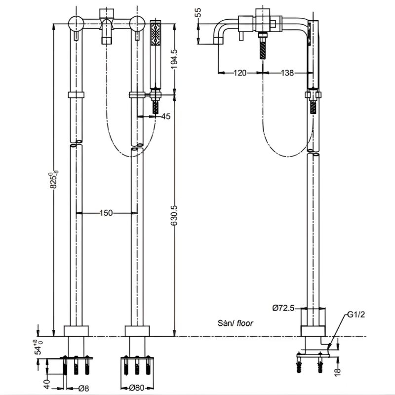 - Loại đặt sàn, tương thích với nhiều loại bồn tắm