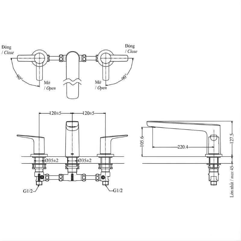 Vòi bồn tắm TBG03201BA thuộc GS Series, thiết kế 3 lỗ lắp trên bồn, mang phong cách sang trọng và tinh tế, phù hợp với không gian phòng tắm cao cấp. Sản phẩm được làm từ đồng mạ Niken–Crom, bền bỉ và sáng bóng với lớp mạ Niken dày gấp 3 lần, giúp chống ăn mòn hiệu quả. Vòi sử dụng van gật gù điều khiển nóng – lạnh, hoạt động ổn định trong dải áp lực nước 0.05 ~ 1.0 MPa. Điểm nổi bật là thiết kế ngăn dẫn nhiệt trên tay gạt, tăng độ an toàn khi sử dụng.